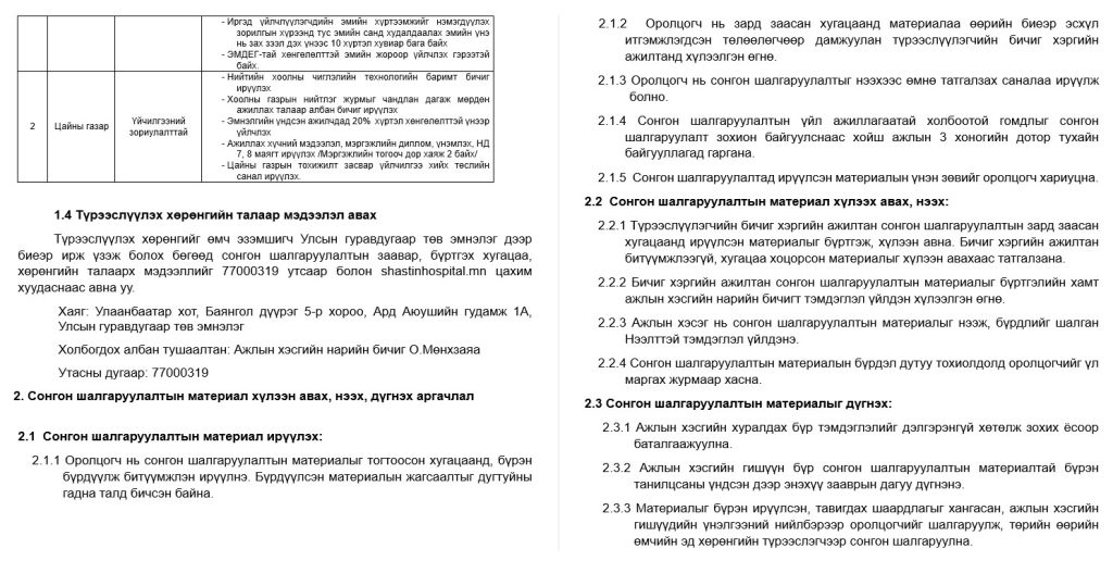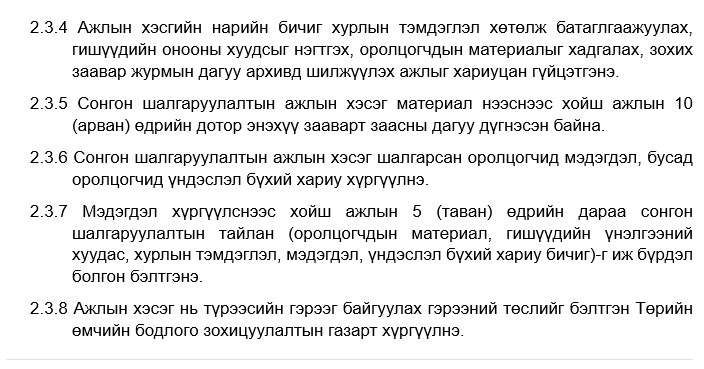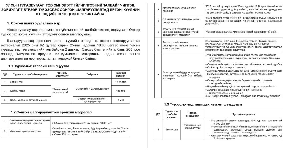 УГТЭ-Т ҮЙЛЧИЛГЭЭНИЙ ТАЛБАЙГ ЧИГЛЭЛ, ЗОРИУЛАЛТ БҮРЭЭР ТҮРЭЭСЛЭХ СОНГОН ШАЛГАРУУЛАЛТАД ИРГЭН, ХУУЛИЙН ЭТГЭЭДИЙГ ОРОЛЦОХЫГ УРЬЖ БАЙНА