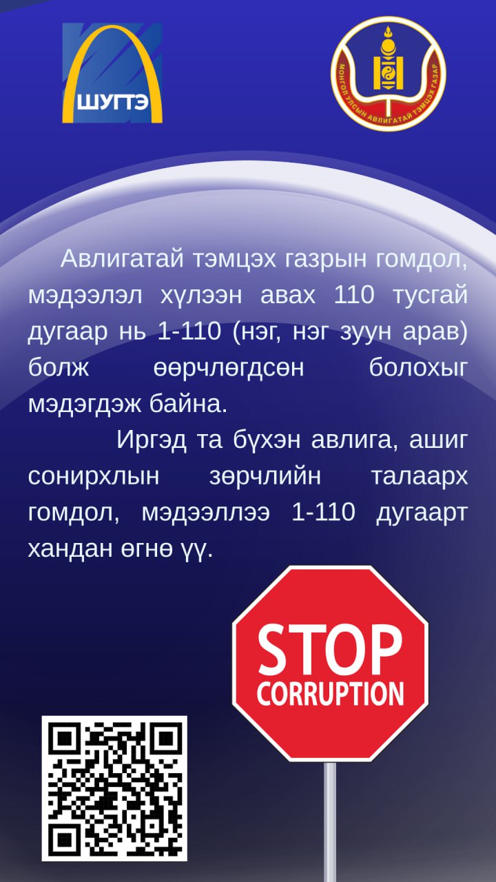 Авлигатай тэмцэх газрын гомдол, мэдээлэл хүлээн авах утас