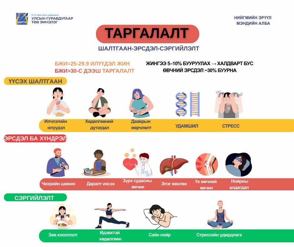 Таргалалт нь зөвхөн гадаад төрхийн асуудал биш, харин олон төрлийн өвчний эрсдэлийг нэмэгдүүлдэг билээ. Тиймээс тэнцвэртэй хооллолт, идэвхтэй хөдөлгөөнтэй амьдралын хэв маяг нь таргалалтаас сэргийлэх хамгийн үр дүнтэй арга болдог.