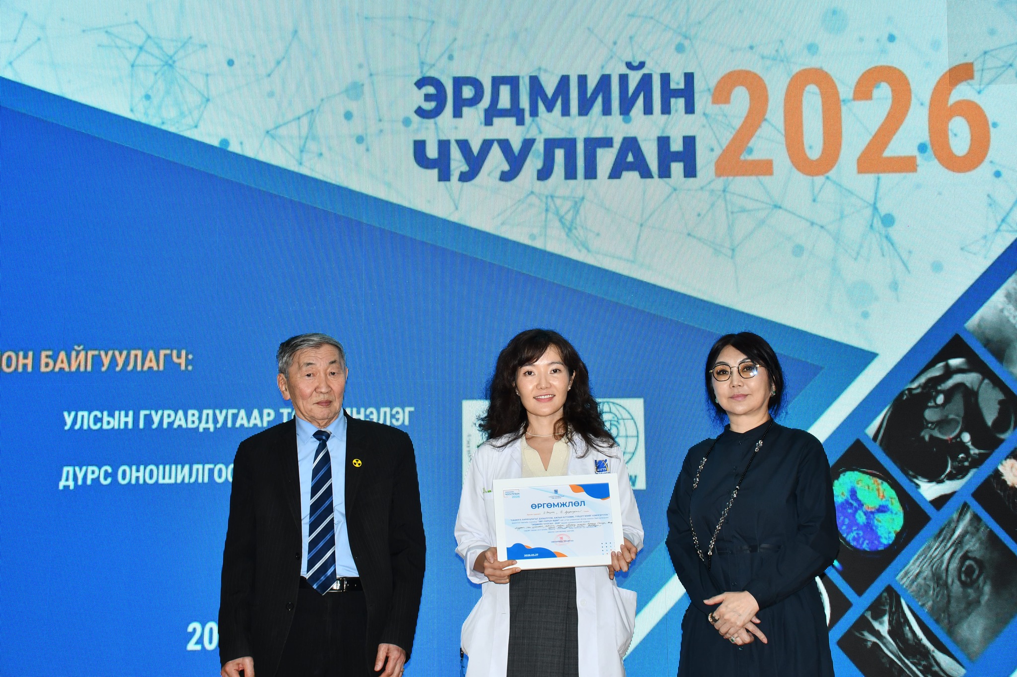 • Эрдмийн Чуулган-2026 эрдэм шинжилгээний хурлын Тэргүүн байрыг Мэдрэлийн мэс заслын тасгийн их эмч Г.Эрдэнэбат нарын “Улсын гуравдугаар төв эмнэлэгт хийгдсэн цус хомсрох харвалтын үеийн STA-MCA bypass мэс заслын үр дүн”,